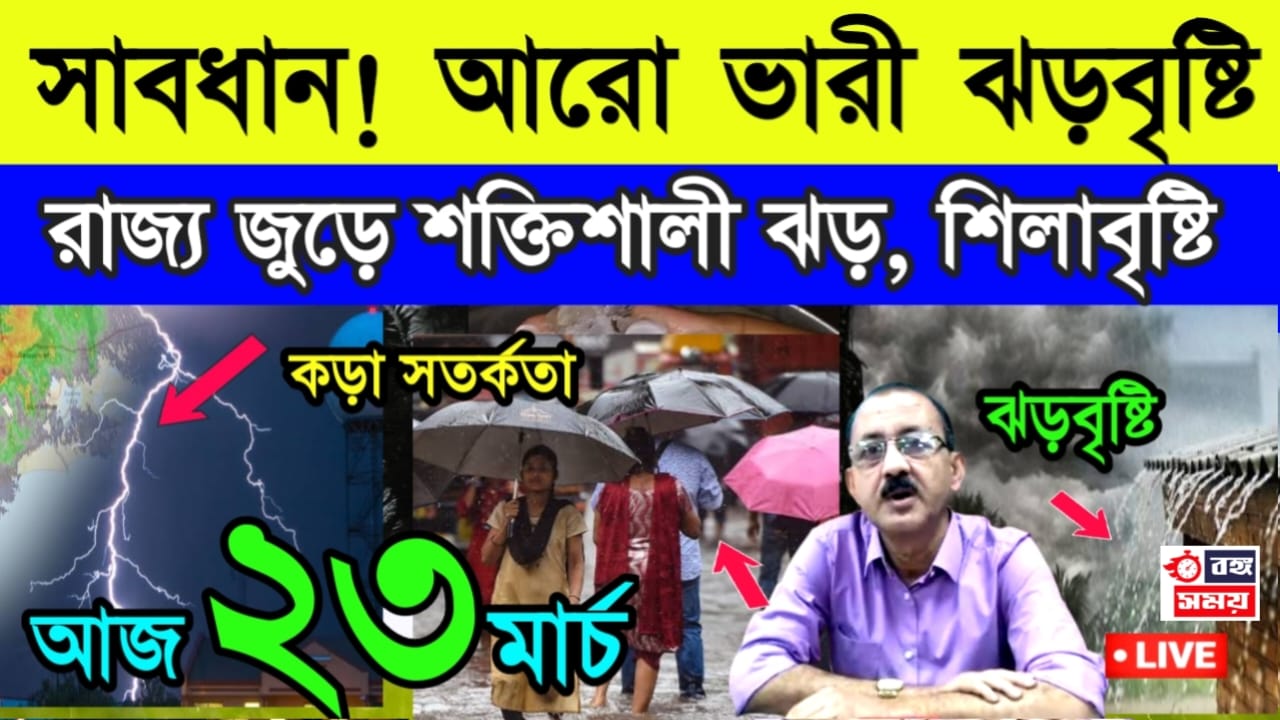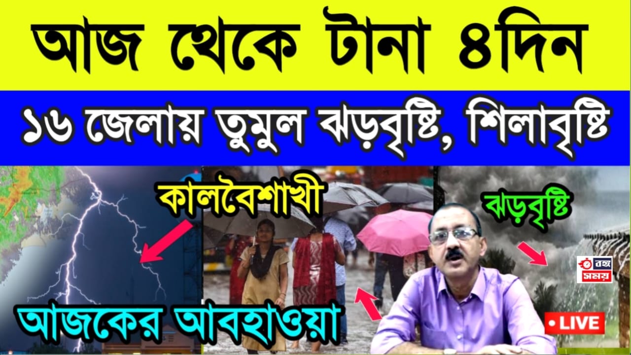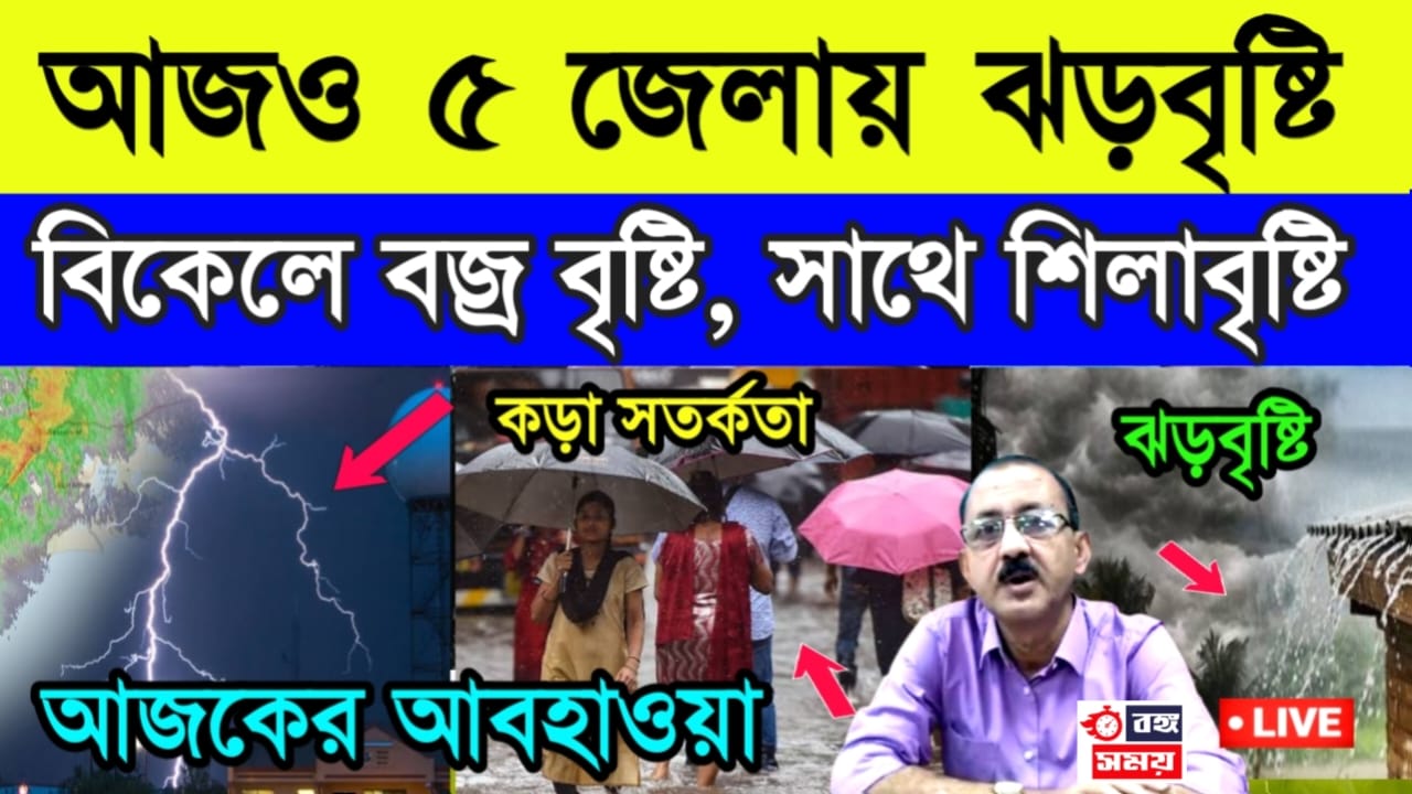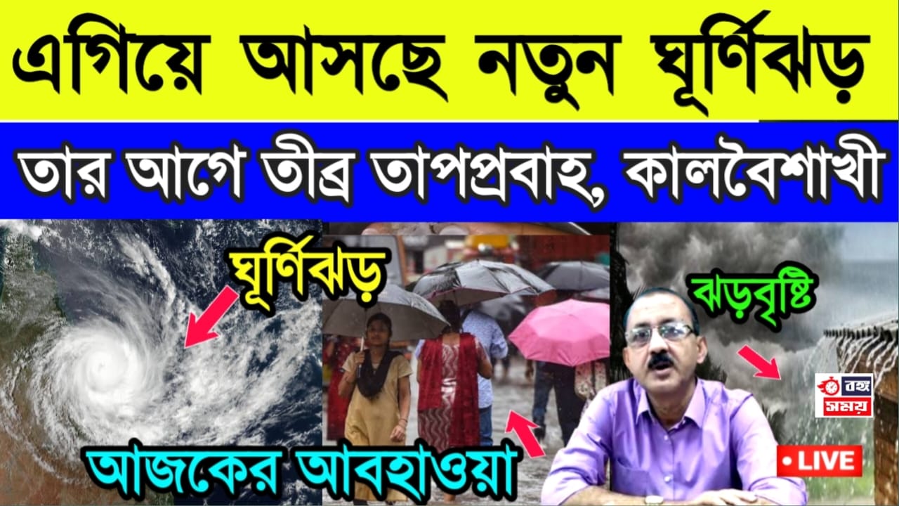বঙ্গোপসাগরে সক্রিয় ঘূর্ণবাতের জেরে প্রচুর পরিমাণে জলীয় বাষ্পর প্রবেশ করেছে বাংলায়। ফলে আজ থেকেই পশ্চিম মেদিনীপুর পূর্ব বর্ধমান হুগলি ঝাড়গ্রাম বাঁকুড়া জেলাতে কালবৈশাখীর প্রবল দাপট দেখা যাবে। বজ্রবিদ্যুৎসহ ঝড়-বৃষ্টির সঙ্গে বইবে দমকা ঝোড়োহওয়া। দক্ষিণবঙ্গের বাঁকি জেলাগুলো যেমন বীরভূম নদীয়া উত্তর ২৪ পরগনা দক্ষিণ 24 পরগনা পূর্ব মেদিনীপুর ঝাড়গ্রাম সহ আরো বেশ কয়েকটি জেলায় দমকা ঝড়ো হওয়ার সঙ্গে প্রবল ঝড়-বৃষ্টির সম্ভাবনার কথা জানিয়েছে মৌসুম ভবন।