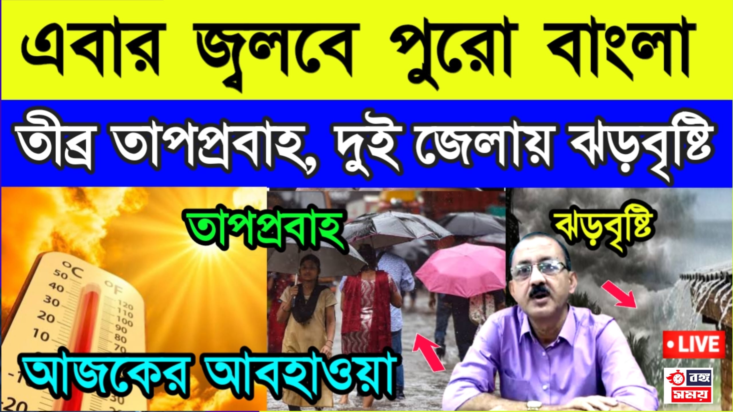 অবশেষে আবহাওয়া (Todays Weather)বড় বদল, জোড়া ঘূর্ণবাত এবং পশ্চিমী ঝঞ্ঝার দাপটে শুরু বজ্রসহ ঝড় বৃষ্টি(Rainfall)। টানা চারদিন পর্যন্ত চলতে থাকবে এই দুর্যোগপূর্ণ পরিস্থিতি। এই নিয়ে জেলায় জেলায় ইতিমধ্যে হলুদ সর্তকতা(Yellow Alert) জারি করেছে আবহাওয়া দপ্তর। পাশাপাশি বেশ কয়েকটি জায়গায় কালবৈশাখীর চরম সতর্কবার্তা দেওয়া হয়েছে। তীব্র তাপ প্রবাহে ইতিমধ্যেই নাজেহাল অবস্থা বঙ্গবাসীর, তবে ভয়ঙ্কর বজ্রবৃষ্টি এবং কালবৈশাখীর পূর্বাভাসে সিঁদুরে মেঘ দেখছে পুরো বাংলা।